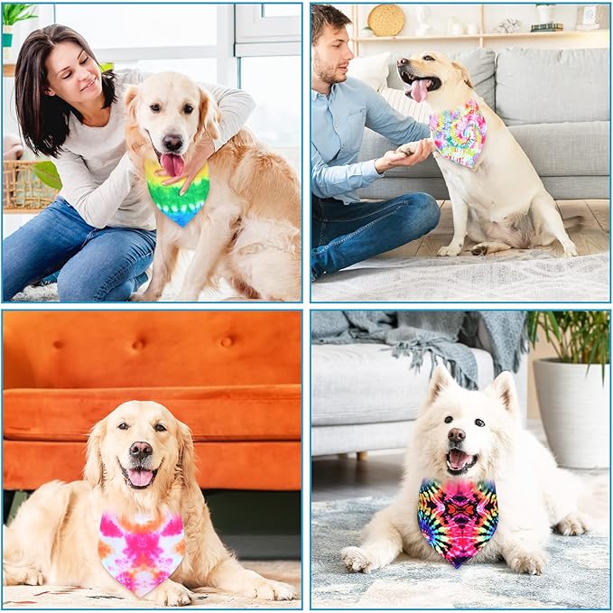 - Unique and Delicate: each bandana bib dog is designed in tie dye style, and the bright colors make it more beautiful and eye catching; Wear our dog bandana at the party can make your loved pet more attractive