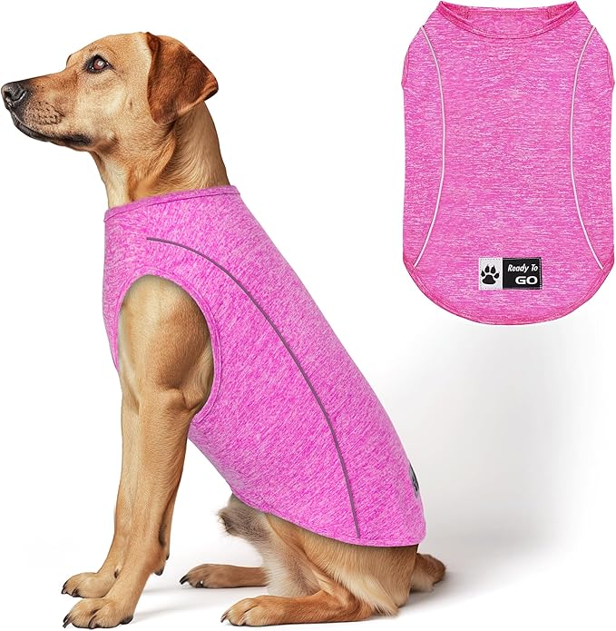 KYEESE Dog Shirt for Medium Dogs Quick Dry Breathable Dog T Shirt with Reflective Stripe Lightweight Tank Top Summer Stretchy Sleeveless Vest Pet Clothes, Rose Red, 2XL