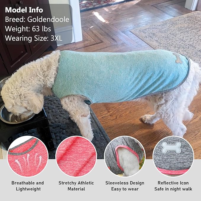 KYEESE 2 Pack Dog Shirts for Large Dogs Quick Dry Soft Stretchy Dog T-Shirts with Reflective Label Tank Top Sleeveless Vest Sun Protection Pet Clothes, Coral Red+Grey, 3XL