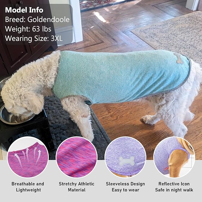 KYEESE 2 Pack Dog Shirts for Large Dogs Quick Dry Breathable Stretchy Sun Protection Pet T-Shirts with Reflective Label Tank Top Sleeveless Vest Dog Clothes, Purple+Pink, 3XL