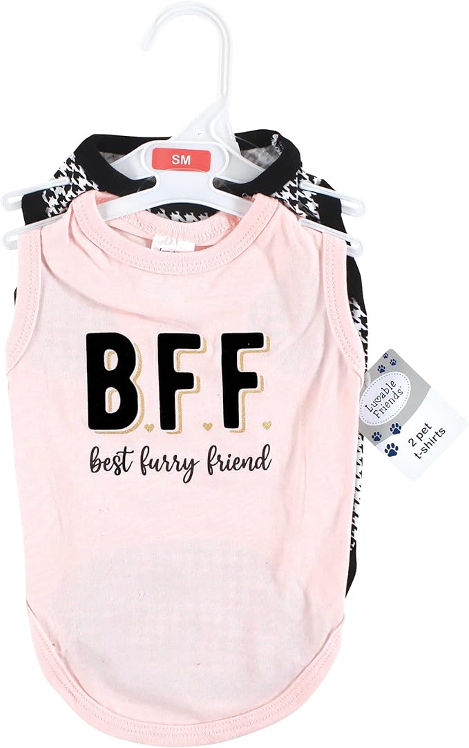 Luvable Friends Dog Pet Dog and Cats Cotton T-Shirts 2pk, BFF Houndstooth, Large