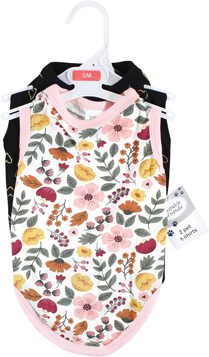 Luvable Friends Dog Pet Dog and Cats Cotton T-Shirts 2pk, Botanical Heart, X-Small