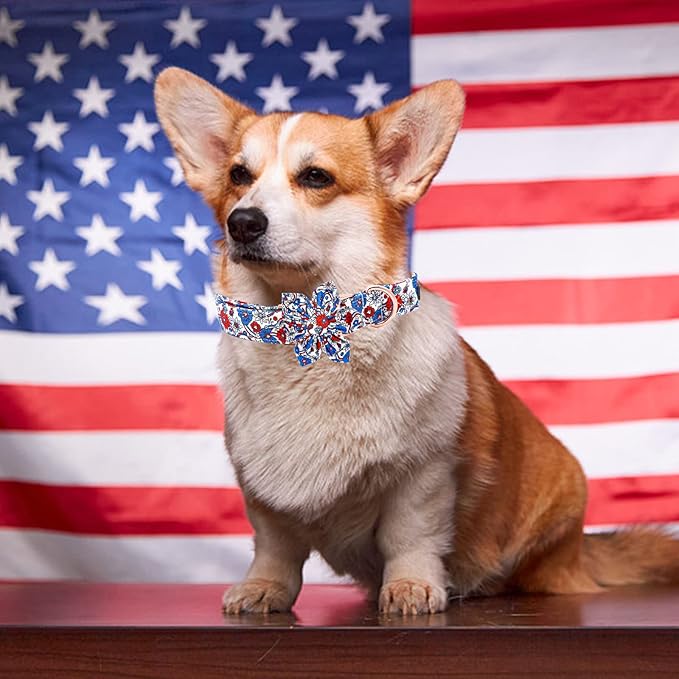 - INDEPENDENCE DAY DOG COLLAR : 4th of July Patriotic Holiday Dog Collar and Flower design with USA word pattern, Perfect gift for spreading Independence Day spirit, Your furbaby will be the most glamorous and dazzling of the day!