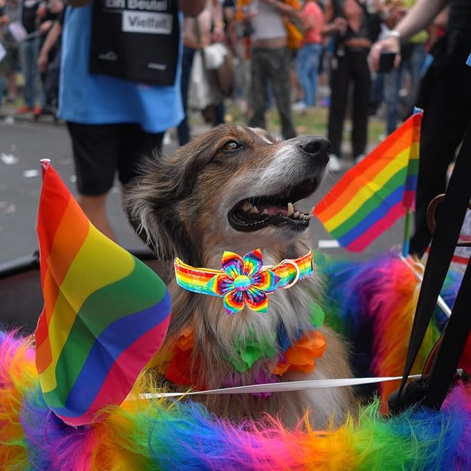 - RAINBOW PRIDE FLAG DOG COLLAR: Show off your gay pride with one of our vibrant rainbow dog collars. The perfect gift or apparel for your furry friend.