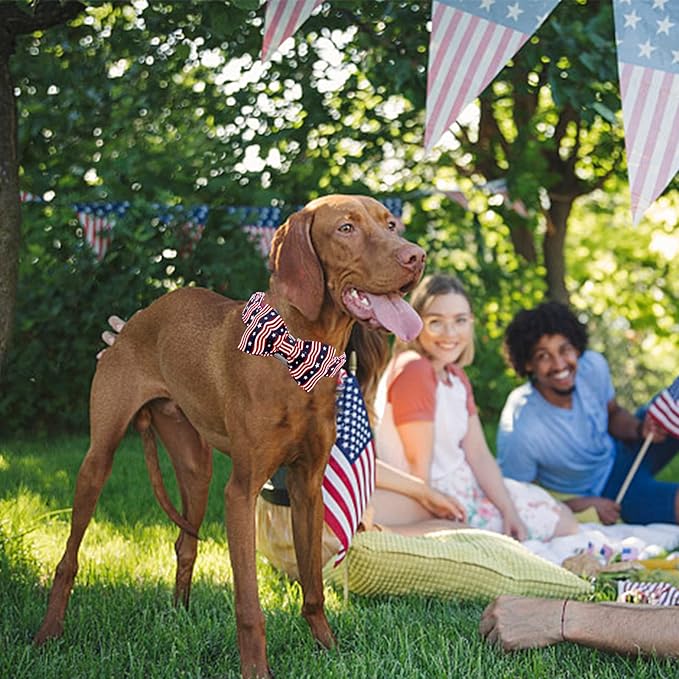 Lionheart glory American Flag Dog Collar, 4 of July Dog Bow Collar Heavy Duty Adjustable Patriotic Dog Collar with Bowtie for Medium Dogs Pet Gift