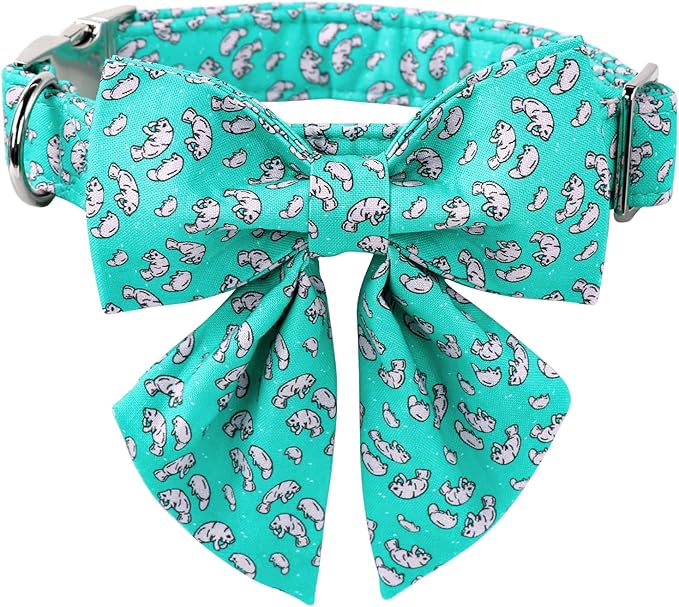 Lionet Paws Summer Dog Collar with Sailor Bow, Soft Comfortable Adjustable Cute Manatee Collar for X-Large Dogs, Neck 16-26 inches