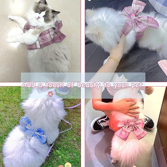 - Dog Dress Leash Set:This cute bow tie princess dog dress made of polyester,with a metal D shaped ring on the back,dog leash made of nylon,soft and durable.so the metal hook of the leash can be easily buckled, you can take your pet out to better control the movement of them, preventing your dog from slipping or running lost.