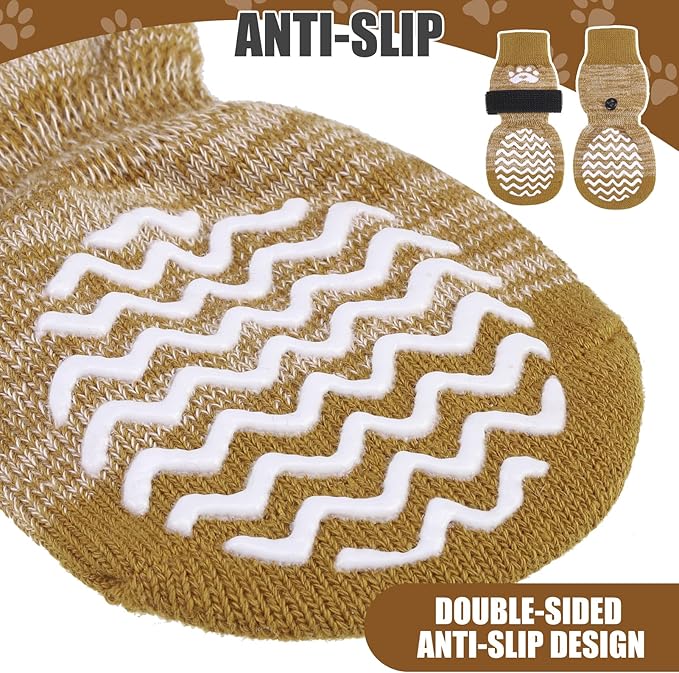 - [Double Sides Non-Slip] - Each side of the sock has [Wave pattern Grip] which can offer extra traction when your dog is walking on the smooth floor. Even if the socks twist, they will still work. Besides, the design of the double-sided grip makes the socks a longer life. When the grip on one side is worn and does not have the anti-slip effect, you can let the dog wear the other side to play a new anti-slip effect.
