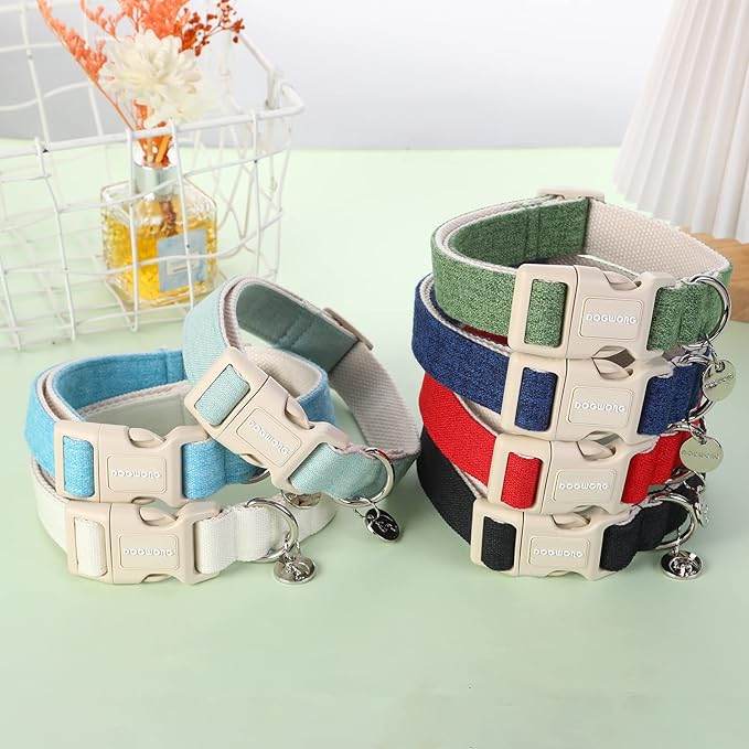 DOGWONG Cotton Hemp Dog Collar, Heavy-Duty Adjustable Soft Natural Fabric Pet Collar for Small to Large Dogs