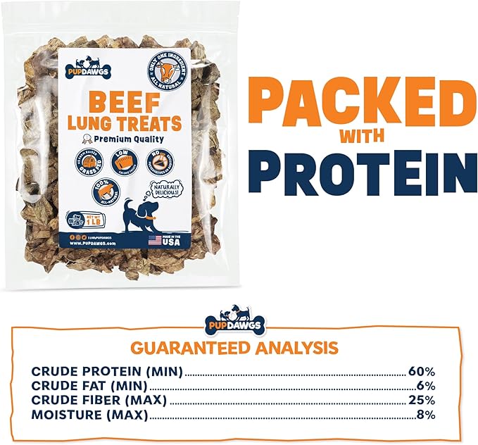 - Single Ingredient - Irresistible Flavor: Hickory smoke roasted beef lung for dogs for a mouthwatering, savory taste your dog will love and you'll feel good knowing you're providing them with a healthy and delicious reward. Beef lung treats have a naturally appealing flavor to dogs, making them a palatable choice for training or occasional rewards. The texture of dehydrated beef lung dog treats provides a satisfying chewing experience for dogs, promoting dental health and reducing tartar buildup.