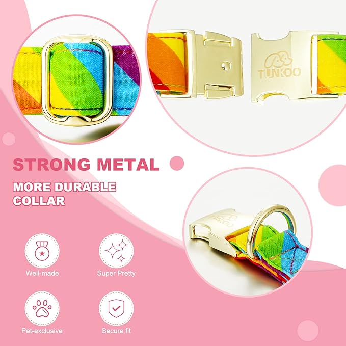 Tunkoo Rainbow Dog Collar with Very Pretty Bow Tie for LGBT Pride Month - Adjustable and Comfortable Collar for Large Medium Small Pet L