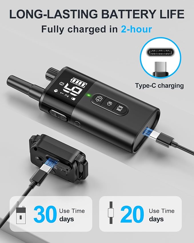 - Dual USB-C charging cables can charge both the remote and the collar at the same time, a full charge only takes about two hours. Battery life is up to 20 days for effective, uninterrupted training. If you want to travel or camp with your dog, the long-lasting battery life provides greater convenience.