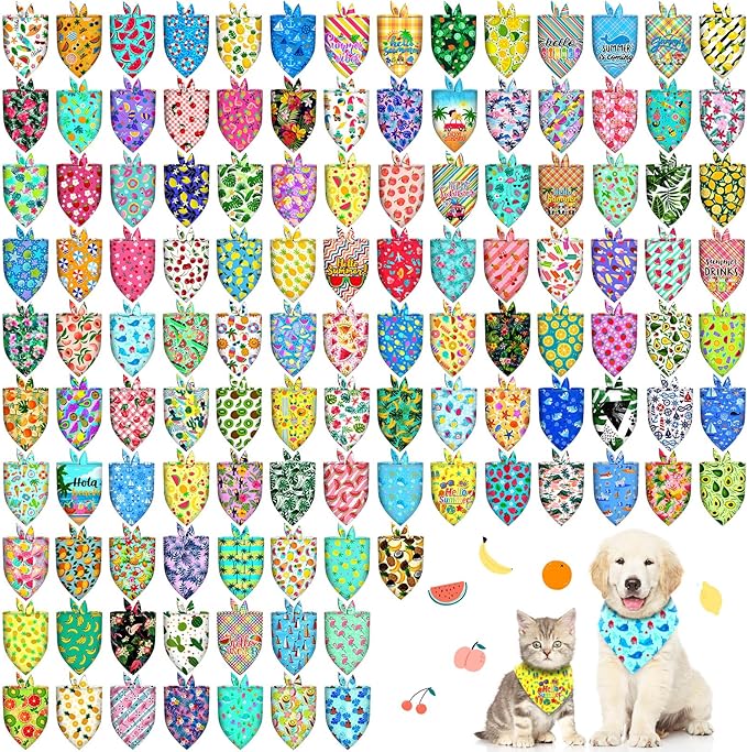 120Pcs Spring Summer Dog Bandanas Bulk Hawaiian Dog Scarves Fruit Triangle Puppy Bandanas Washable Adjustable Pet Bandana for Small Medium Large Dog Puppy Pet Grooming Accessories