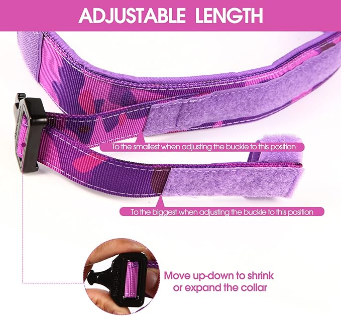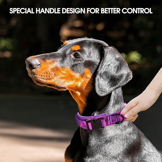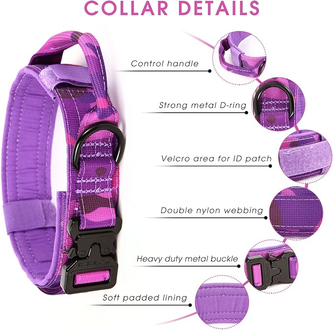 Tactical Dog Collar with Heavy Duty Metal Buckle and Control Handle for Medium Large Dogs Training(Purple Camo, Medium)