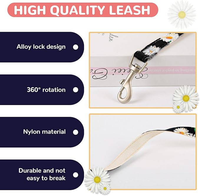- Pretty Dog Harness Leash Set:This dog harness with a large bow and flower pattern design is fashionable.With daisy pattern, this dog vest harness becomes more beautiful.Put it on and your dog girl will instantly become an elegant and beautiful princess