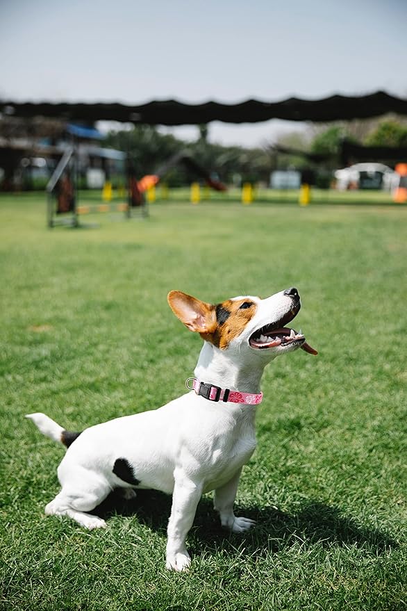 Dog Collar, Cute Floral Pattern, Soft and Adjustable Collar with Quick Release Buckle (S (Neck 11-18", Width 5/8"), Hawaiian Pink)