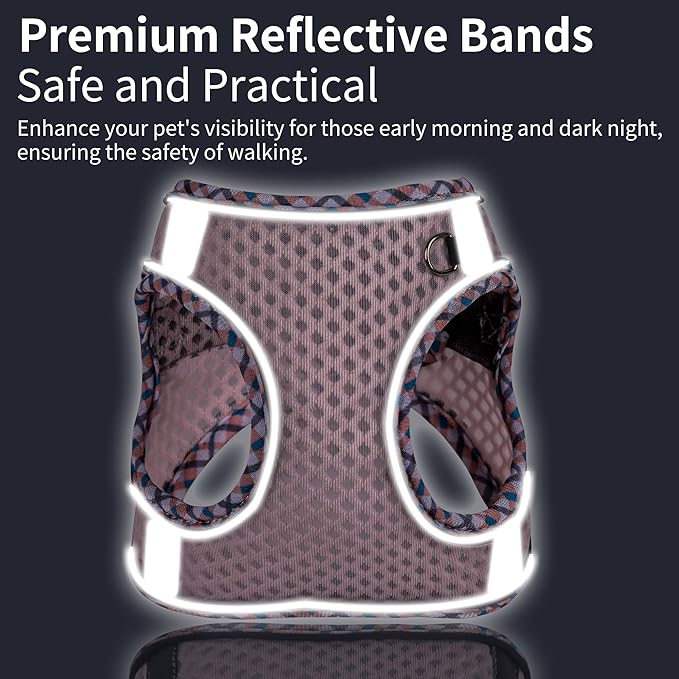 - REFLECTIVE ADJUSTABLE TINY DOG HARNESS - Puppy harness and leash set is designed with premium reflective strips and four reflective bands on the sides, this harness can be seen even in low visibility conditions or dark night, making it easier to control dogs and ensuring the safety of walking at night.