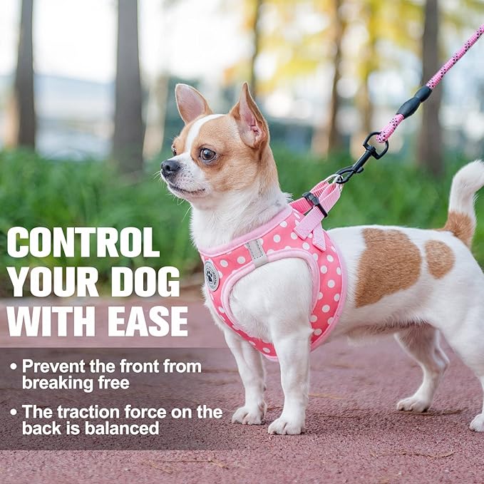 BEAUTYZOO Step in Dog Harness and Leash Set, Polka Dot Pattern Reflective Dog Harness No Pull No Choke Puppy Harness for XXS XS S Dogs Cats, Soft Padded Mesh Vest Harnesses for Girl and Boy Pets
