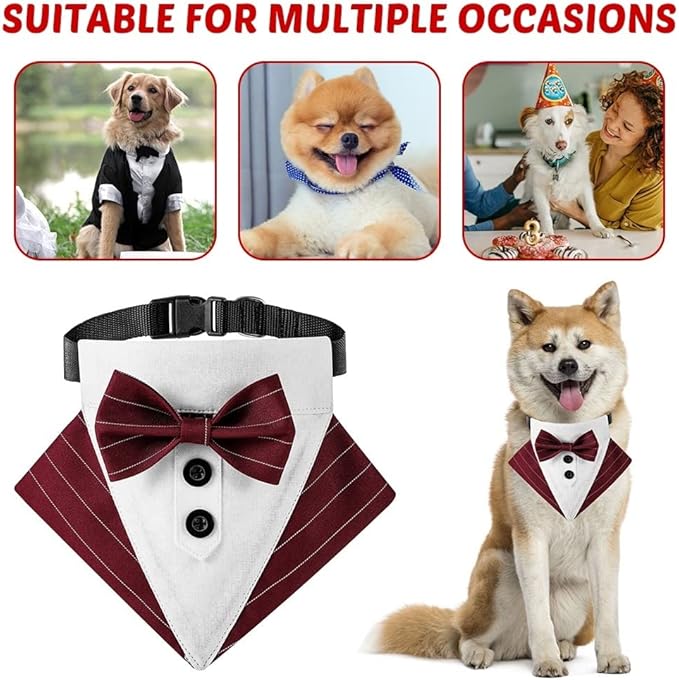 Dog Bowtie Bandana, Adjustable Formal Dog Tuxedo Collar with Bow Tie Pet Bowtie Collar for Boy Dog Wedding Grooming Birthday Party