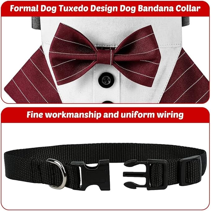 Dog Bowtie Bandana, Adjustable Formal Dog Tuxedo Collar with Bow Tie Pet Bowtie Collar for Boy Dog Wedding Grooming Birthday Party