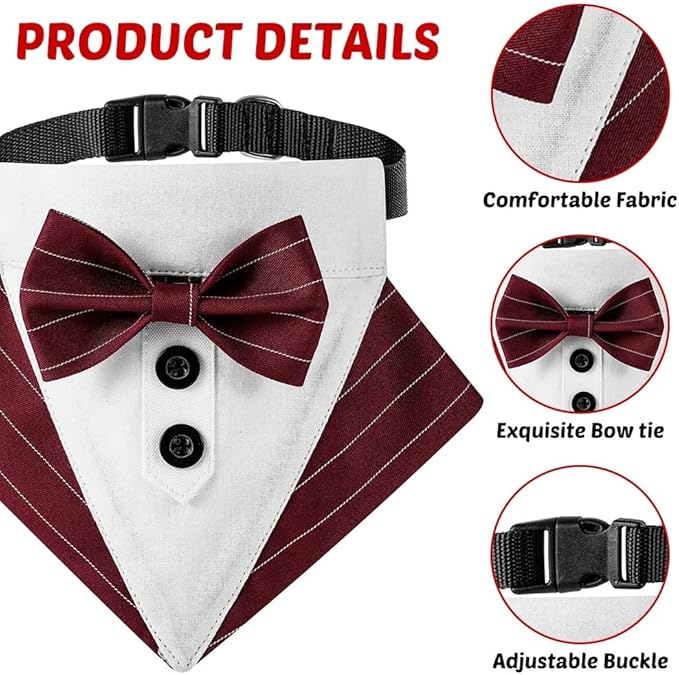 Dog Bowtie Bandana, Adjustable Formal Dog Tuxedo Collar with Bow Tie Pet Bowtie Collar for Boy Dog Wedding Grooming Birthday Party