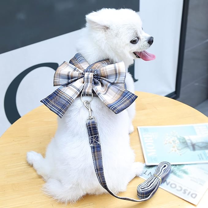 - ✿ Cute Dog Harness ✿ : 1 package contains 1 harness and 1 dog leash with an exquisite plaid pattern. Casual and stylish, perfect for parties, holidays, everyday wear, and photoshoots. A great choice for your dog's birthday or any special occasion.