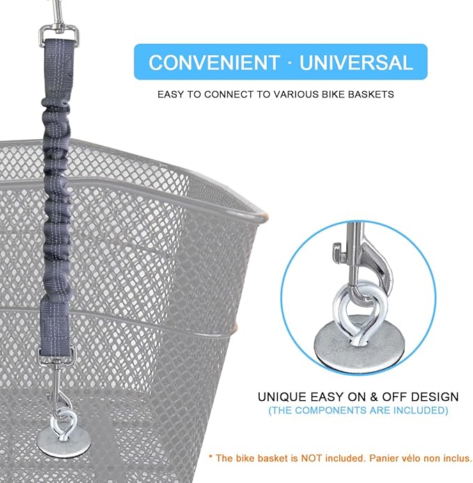 - 【EASY TO USE ON BIKE】: With 2 hooks at both ends, can be easily connected to the bike basket, bike rack or bike pet carrier, while other car seat belts cannot. Contains a belt, a set of mounting accessories and an instruction manual, fits most bike baskets.