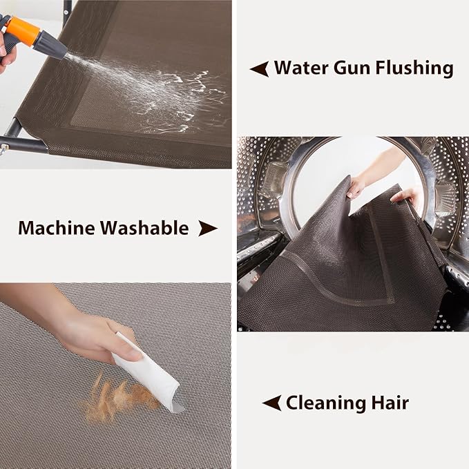 - Portable Cooling Dog Bed: This raised dog bed is easy to assemble and disassemble, ideal as an outdoor dog bed or an indoor raised dog bed. This cooling dog bed is easy to clean. Wash the mesh with tap water, a hose, or a damp towel. For deeper cleaning, use a mild soap or natural all surface cleaner and rinse thoroughly.
