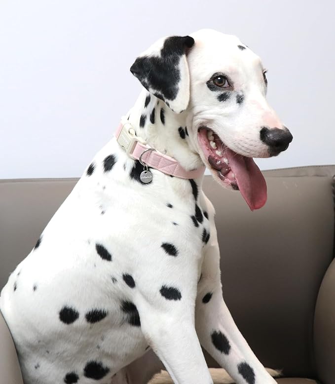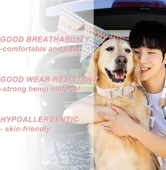 DOGWONG Cotton Hemp Dog Collar, Heavy-Duty Pink Dog Collar Adjustable Soft Natural Fabric Pet Cute Wedding Puppy Necklace for Small Medium Large Dogs