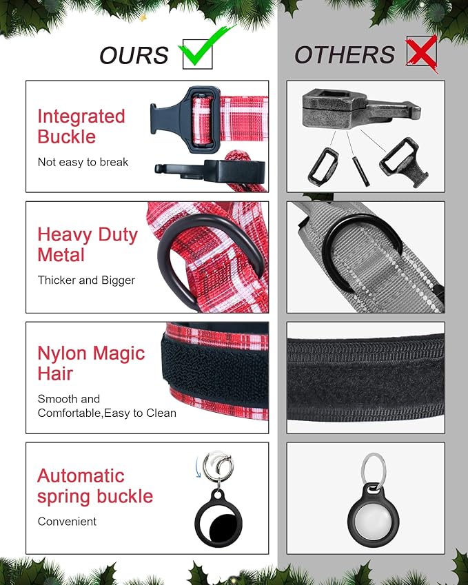 Hotsky Tactical Dog Collar, Adjustable Military Training Nylon Airtag Collar with Handle and Heavy Duty Metal Buckle for Medium Large Dogs, with Airtag Holder and Two Patches(Redplaid,XL)