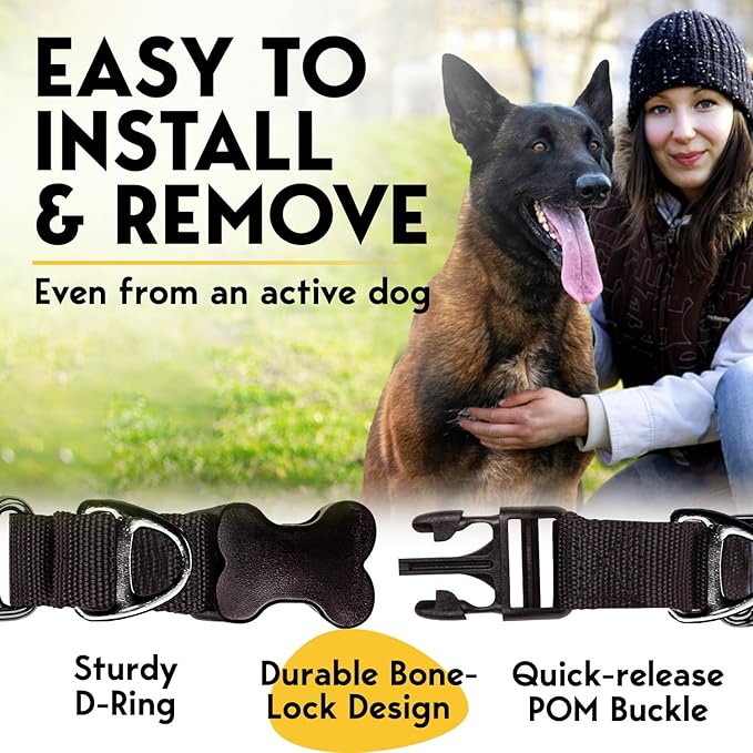 - Designed to Prioritize Your Pet's Comfort: Featuring chrome-plated links equipped with soft silicone caps, our anti-barking, anti-pulling collar stays in place as your dog moves. The smooth, rounded prongs won't dig into a canine's skin—eliminating the risk of possible skin irritation. Built with a quick-release POM buckle snap clip, you'll have no trouble putting on or removing the collar, even from an active dog! Also constructed with a sturdy D-ring, it allows secure attachment of a leash.