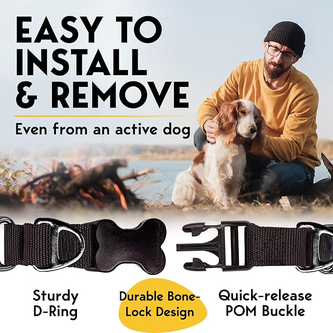 - Designed to Prioritize Your Pet's Comfort: Featuring chrome-plated links equipped with soft silicone caps, our anti-barking, anti-pulling collar stays in place as your dog moves. The smooth, rounded prongs won't dig into a canine's skin—eliminating the risk of possible skin irritation. Built with a quick-release POM buckle snap clip, you'll have no trouble putting on or removing the collar, even from an active dog! Also constructed with a sturdy D-ring, it allows secure attachment of a leash.