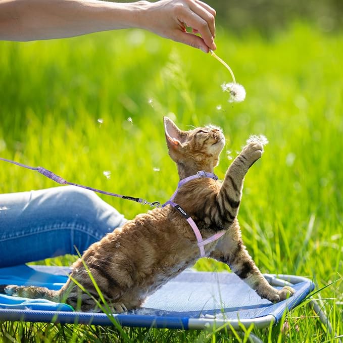 - 【Adjustable Cat Harness】The adjustable strap creates a Perfect Fit for your kitty with some room for growth. The cat harness is made for convenience and function, making this harness easy to get on and off.