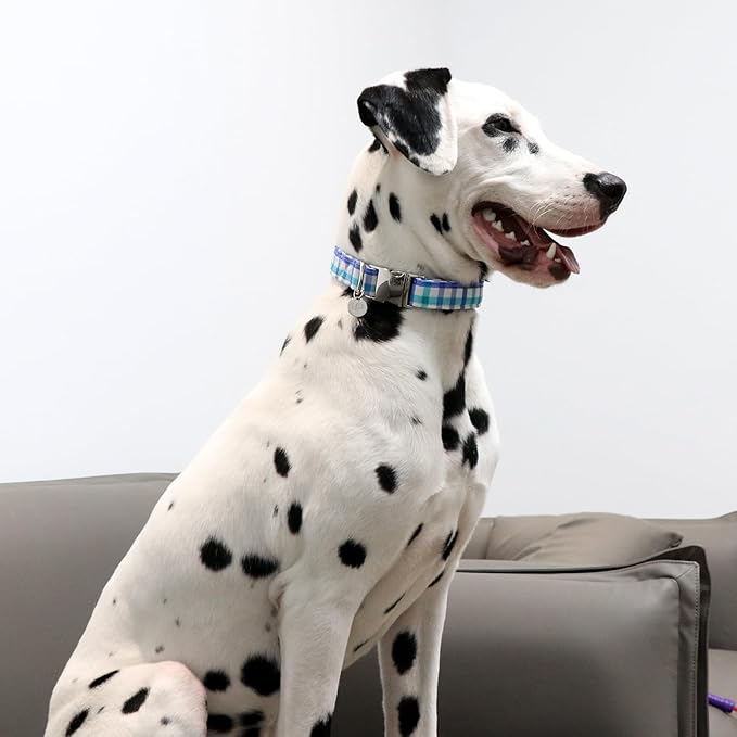 - BLUE GRID SUMMER COLLAR: Classic blue plaid pattern collar is especially suitable for summer. Summer dog collar better shows your dog’s passion.