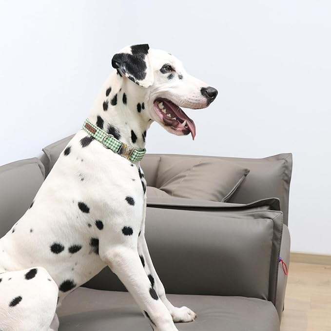 Lionet Paws Dog Collar, Comfortable Adjustable Cute Collar with Metal Buckle for Male Female Dogs, Green&White Grid Pattern, Small, Neck 10-16 inches