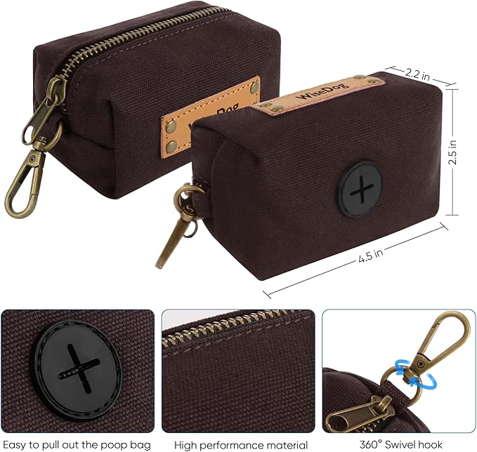 Wisedog Dog Collar and Leash Set Combo: Adjustable Pet Collars with Dog Leashes for Small Medium Large Dogs, Includes 1 Bonus of Poop Bag Holder (S(Collar:10"-14";Leash:4 ft), Brown)