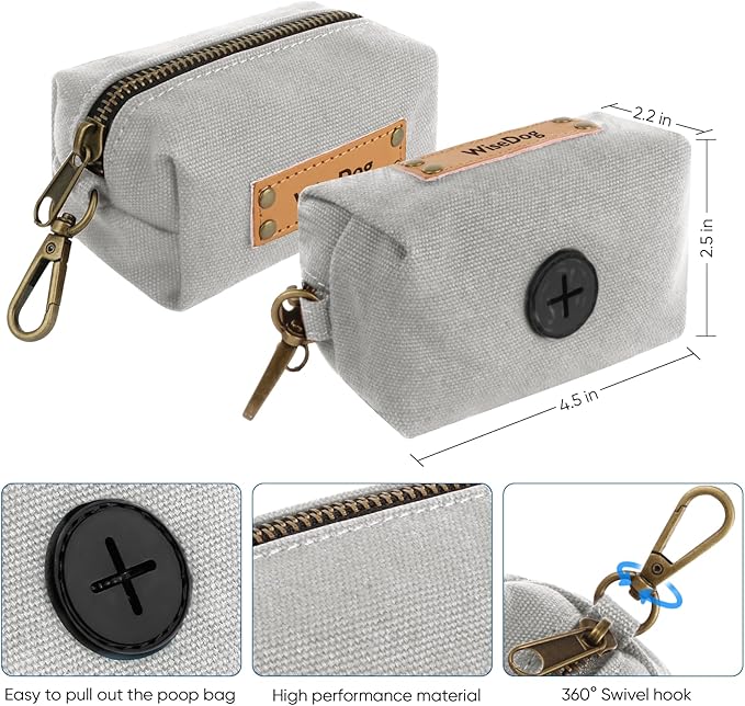 Wisedog Dog Collar and Leash Set Combo: Adjustable Pet Collars with Dog Leashes for Small Medium Large Dogs, Includes 1 Bonus of Poop Bag Holder (XS(Collar:8.5"-12";Leash:4 ft), Grey)