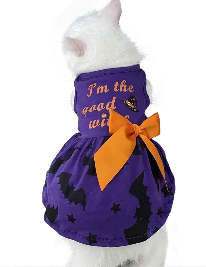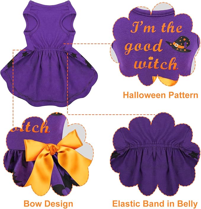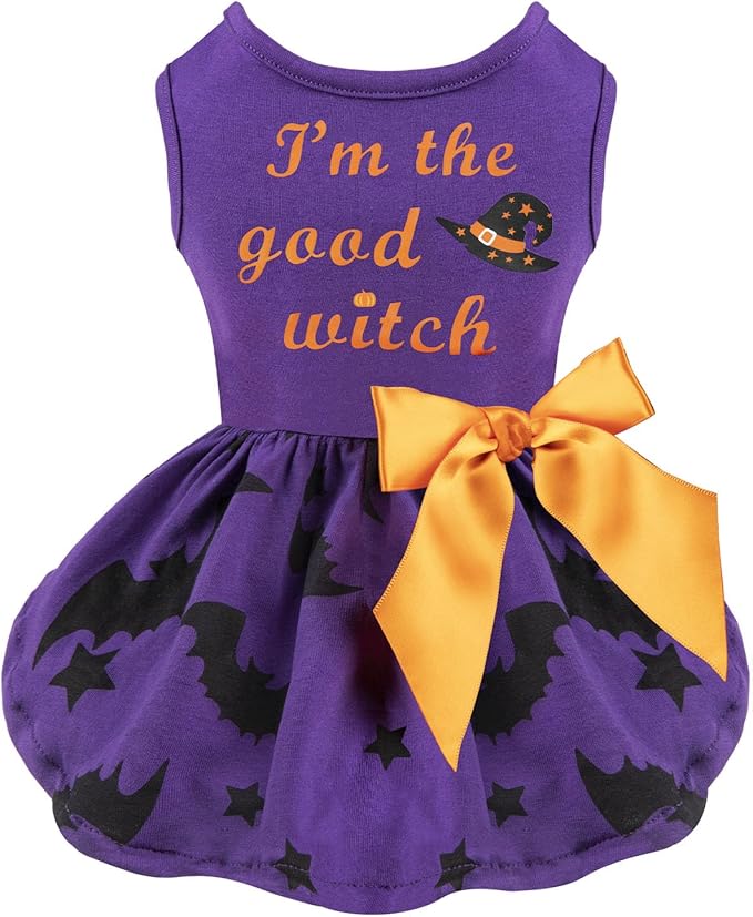 Funny Puppy Dress with Bow - Small & Large Dog Halloween Costume: Pumpkin Witch Bat Pet Dress, I'm The Good Witch (X-Small)