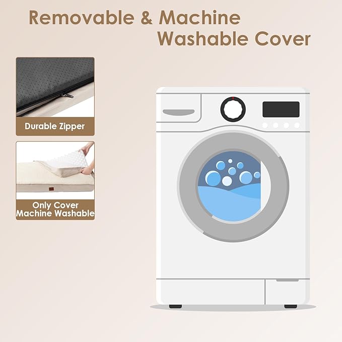 - CARE INSTRUCTIONS: Zippered removable cover is machine washable. Tumble dry on low heat. DO NOT BLEACH. DO NOT IRON. Please note that the inner foam is not washable. After receiving it, leave it for 24-48h for rebound.