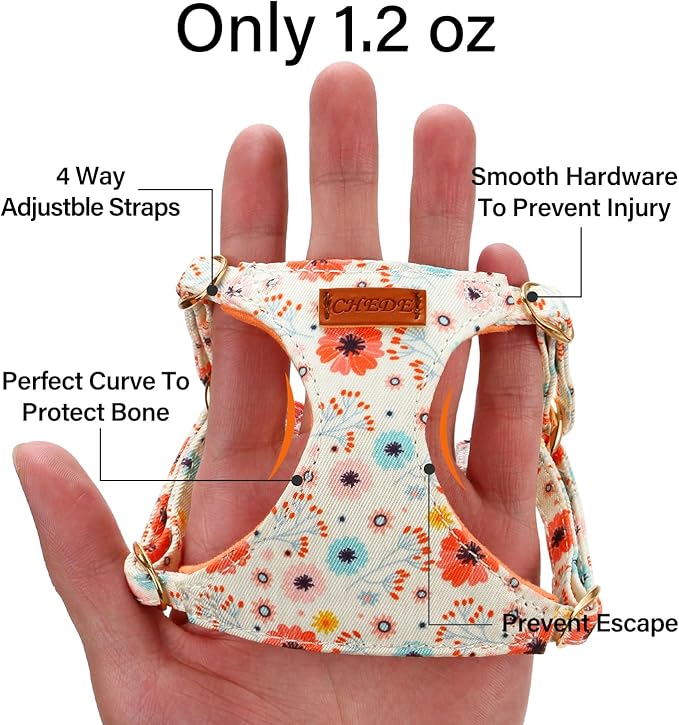 CHEDE No Pull Floral Pattern Dog Harness- Lightweight and Soft Dog Harness, Adjustable Small Dog Harness and Leash Set, with Dog Leash, Suitable for Puppy Small and Medium-Sized Dog