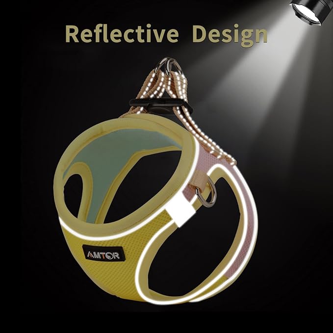 AMTOR Small Dog Harness with Leash Set, No Escape Easy Walk Puppy Harnesses for Training Walking, Step-in Reflective Soft Dogs Vest for XS S Medium Extra-Small Large Sized Dog(Yellow)