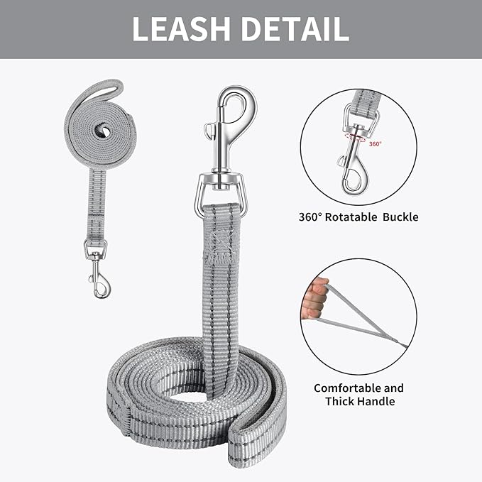 AMTOR Small Dog Harness with Leash Set, No Escape Easy Walk Puppy Harnesses for Training Walking, Step-in Reflective Soft Dogs Vest for XS S Medium Extra-Small Large Sized Dog(Grey)