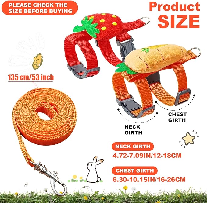 - Packaging: You will receive 2pc bunny harness in carrot and strawberry styles, which fully meet the daily wearing and replacement needs of pets