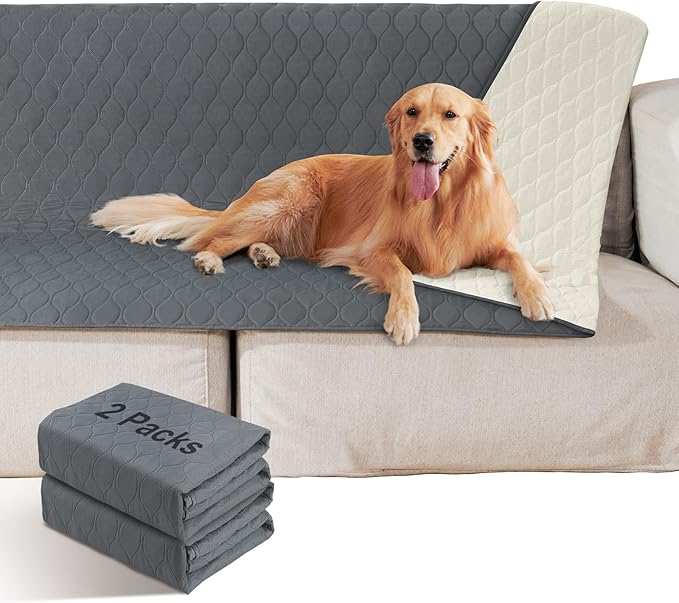 2 Pack Waterproof Dog Bed Cover Blanket Non Slip Couch Cover for Pets Medium Dog Cat Kids Children Sofa Furniture Protector(54"×82", Dark Grey)