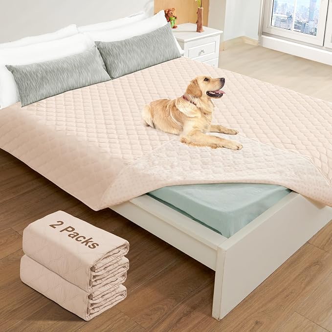 2 Pack Waterproof Dog Bed Cover Blanket Non Slip Couch Cover for Pets Large Dog Cat Kids Children Sofa Furniture Protector(82"×102", Khaki)