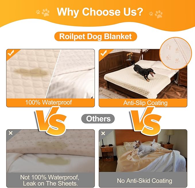 - 【FURNITURE PROTECTOR】Roilpet pet couch protector can not only protect the dog's bed, but also serve as a reliable furniture protector. You can use it conveniently to protect your bed, couch, sofa, chair or floor. Keep from spills, stains and any possible accidents.