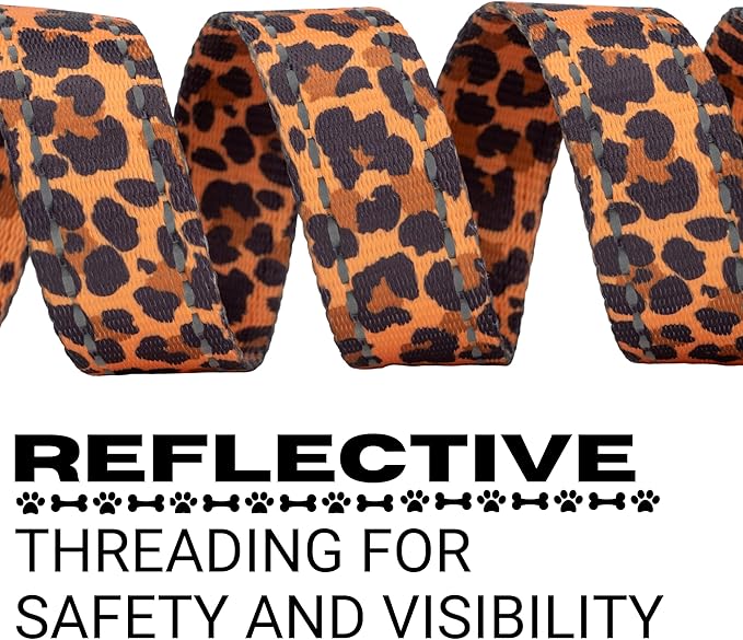 - REFLECTIVE SAFETY FEATURES: Your dog's safety is our top priority. Our leopard leash is equipped with reflective stitching, enhancing visibility during evening walks or low-light conditions, ensuring the safety of you and your furry friend.