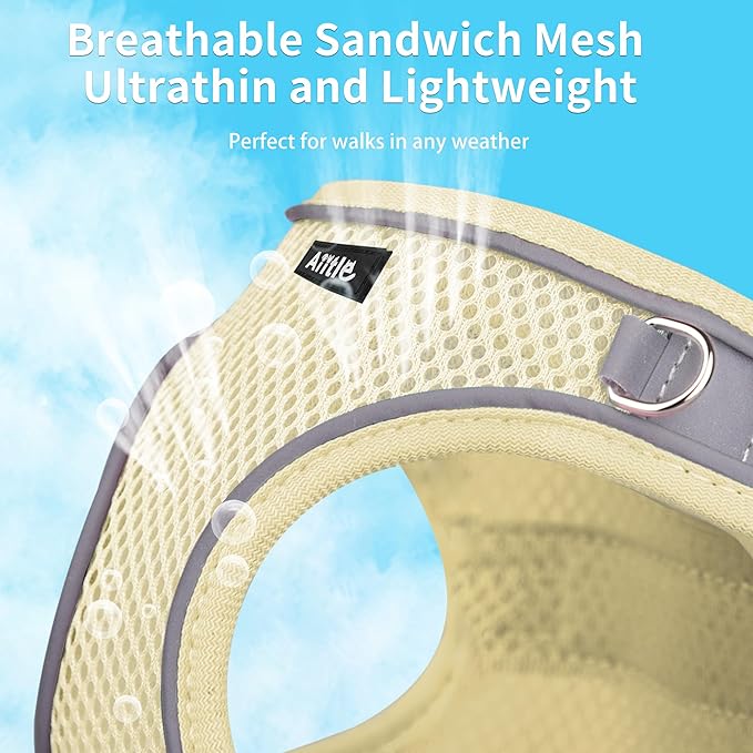 AIITLE Dog Harness, Spring No-Pull Cat Harness with a Leash, Adjustable Reflective Dog Vest, Cat Harness Escape Proof, Outdoor Walking, Camping for Extra Small Dogs and House Cats Beige XXXS