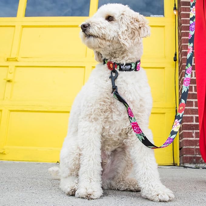Wolfgang Heavy Duty, Adjustable Dog Collar with Quick Release Nylon Buckle for Walking & Training, DarkFloral Print, Large