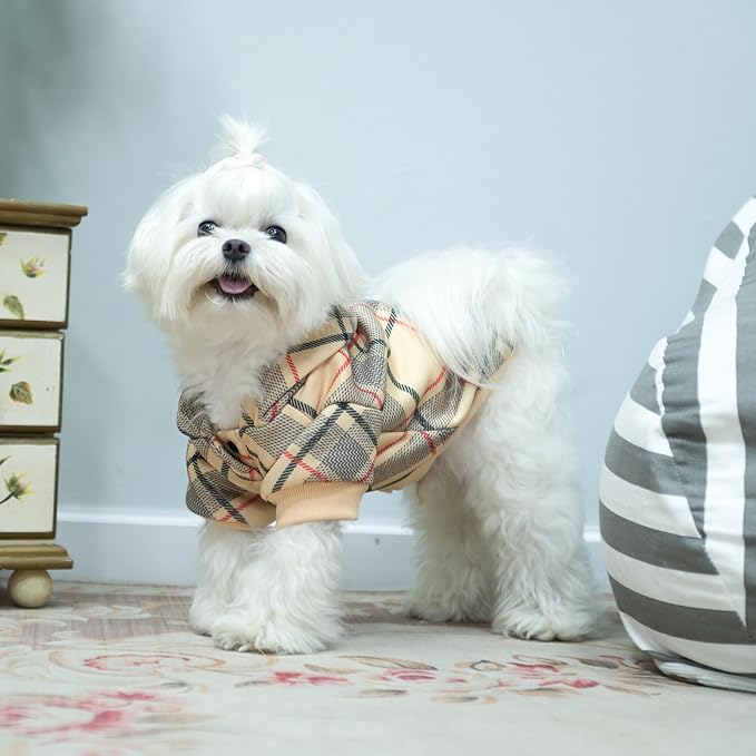 EXPAWLORER Plaid Dog Hoodie - British Style Warm Dog Sweater Shirt with Leash Hole,Pitbull Clothes Outfits,Winter Coat Apparel for All Breeds Puppy Girl Boy-Cat Apparel